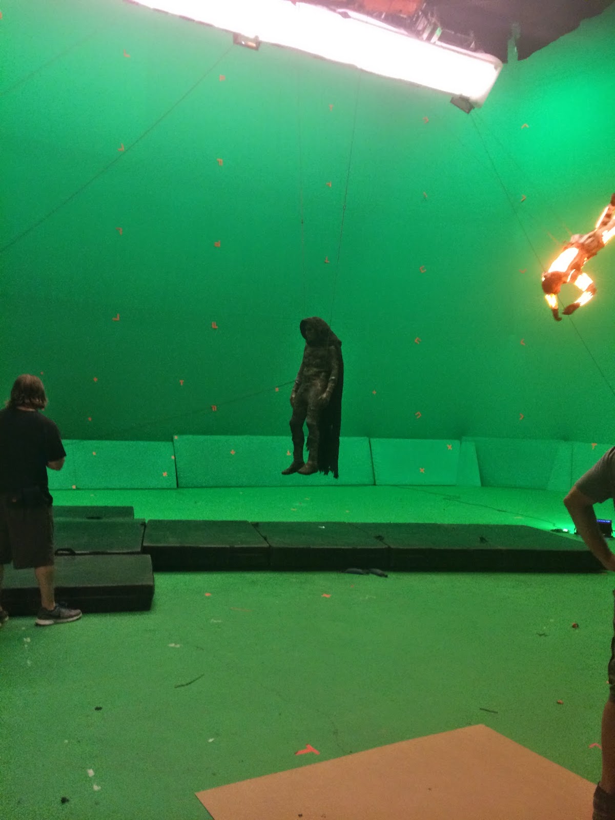 Now, the first thing I noticed when looking over these images is how scary Doom actually looks. In the second image, if you look carefully, you can clearly see an orange stunt double, which is most likely, a stand-in for Michael B. Jordan as Johnny Storm. Special thanks to Geek-Pride and CBM.